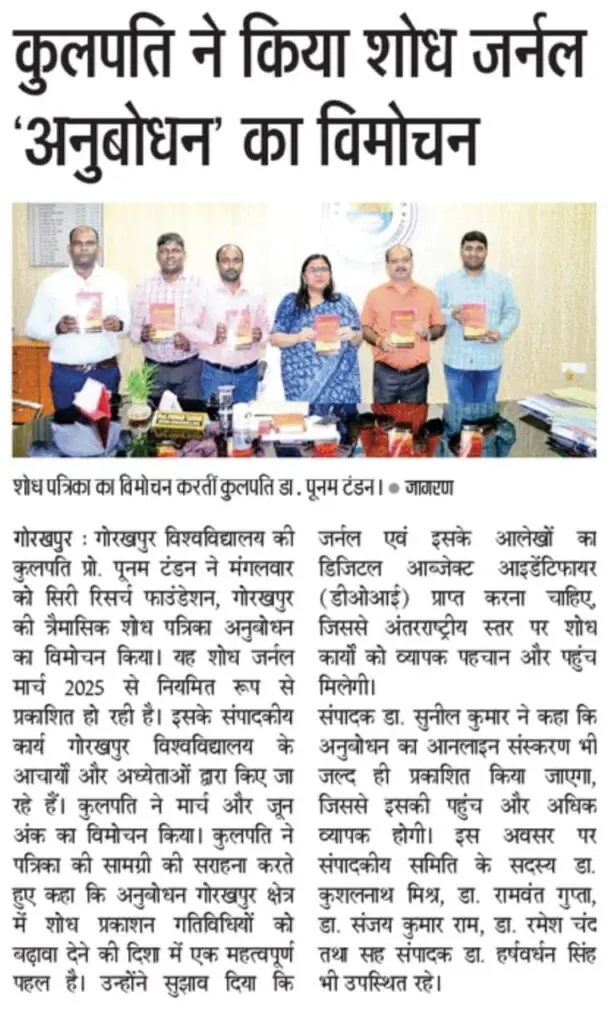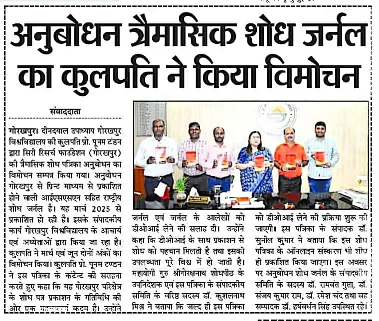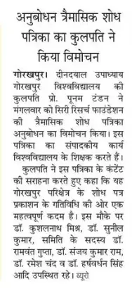 Media Mentions Anubodhan Journal ReleaseANUBODHAN Journal release was covered by one of the largest media houses of India @Bharat24 अनुबोधन त्रैमासिक शोध जर्नल का कुलपति प्रो. पूनम टंडन के द्वारा विमोचन https://phmnews.com/gorakhpur-news/anubodhan-research-journal-launch-gkp-university